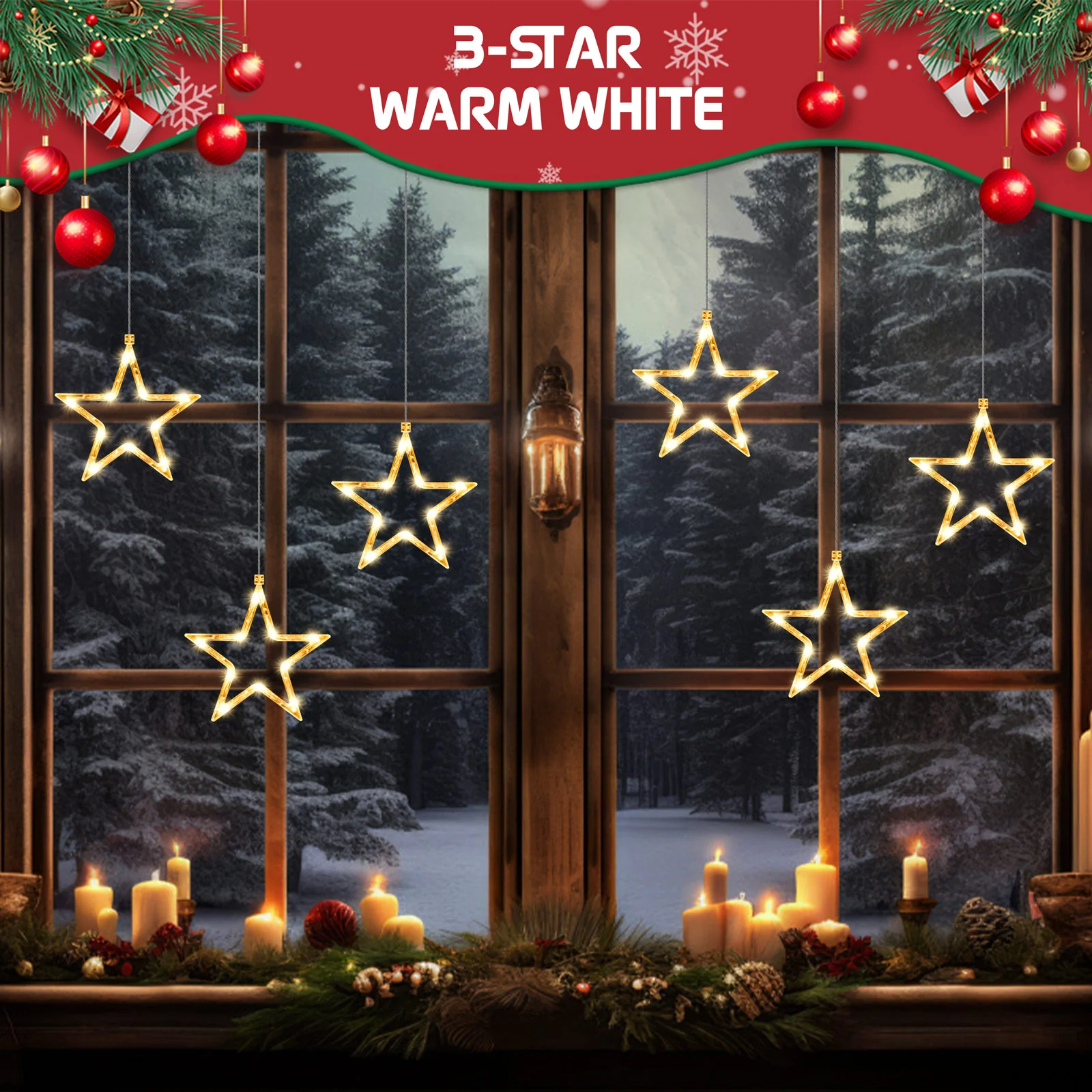- 【Safety and Durable】 Our Christmas indoor window lights use high-quality PS materials. Each star contains 10 warm white LEDs (6 of the stars contain 60 LEDs), powered by 3 AAA batteries (not included), which can be used continuously for more than 90 hours—No-Glare, Low-Heat, and Touch-safe. You and your family will be able to safely decorate with Christmas stars and lights, and experience a pleasant and warm atmosphere together.