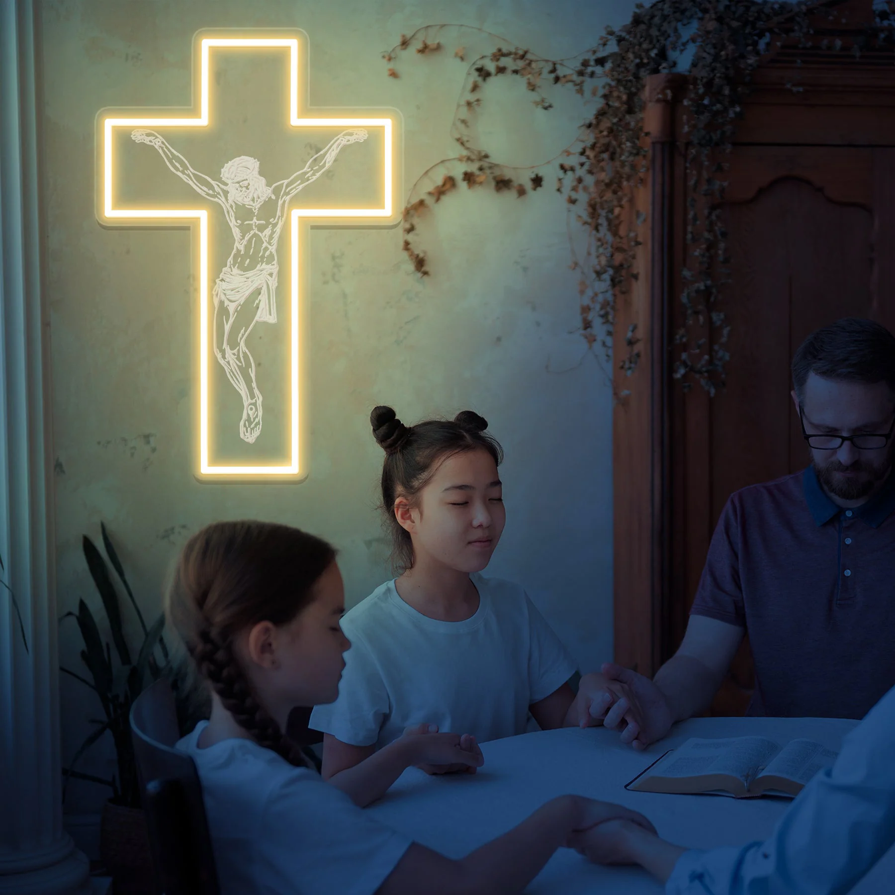 3D Engraved Jesus Cross Neon Wall Light Sacred Christian LED Neon Sign for Home, Church, Prayer Room & Inspirational Faith Decor