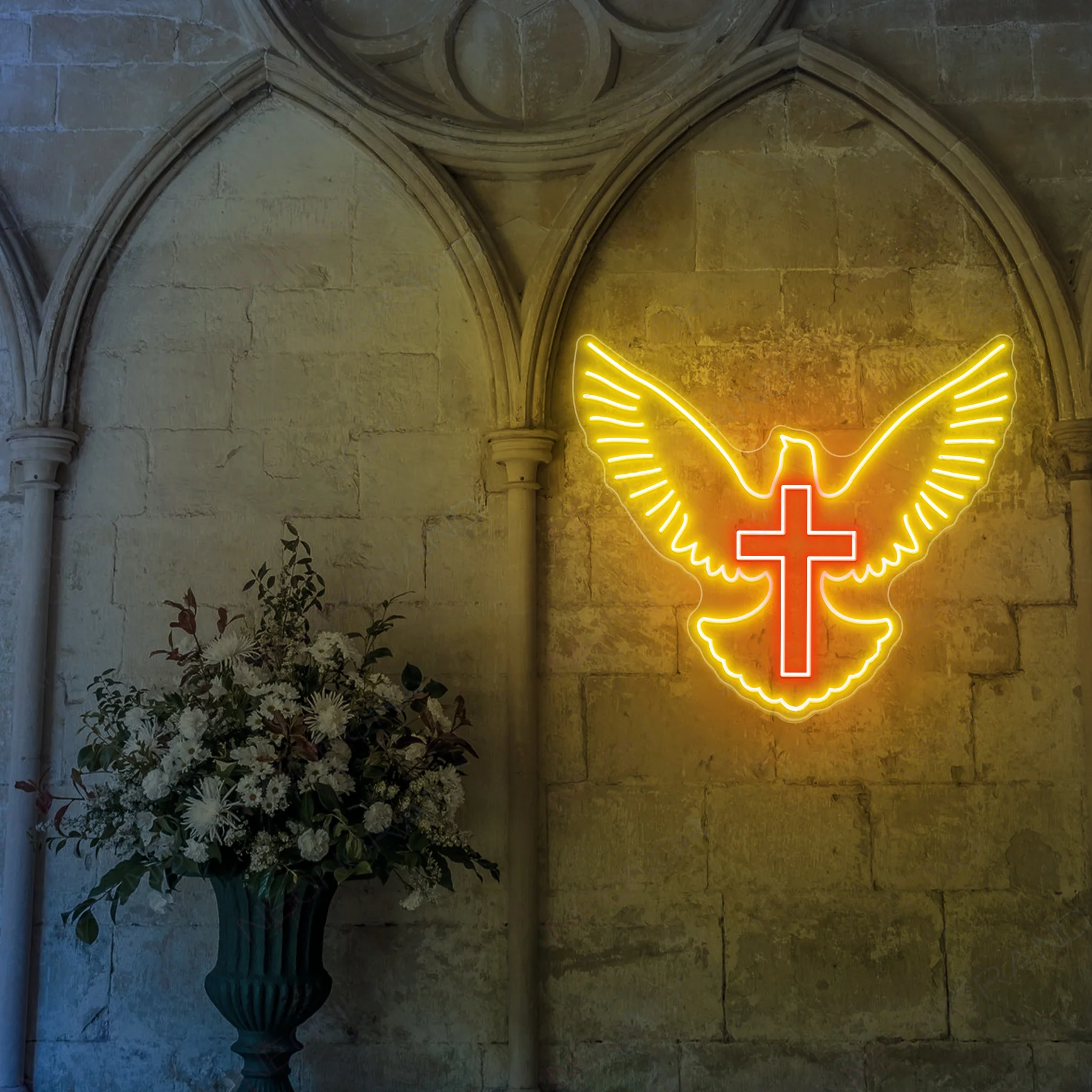 Bring light and peace into your space with this Holy Spirit Dove Neon Wall Light. Featuring a radiant dove outline with a glowing red cross at its heart, this LED sign symbolizes faith, hope, and divine protection. Perfect for churches, prayer rooms, or home décor, it creates a warm and uplifting atmosphere wherever it shines. Energy-efficient and easy to install, this neon wall art is not only a powerful expression of Christian faith but also a stunning piece of spiritual decor.