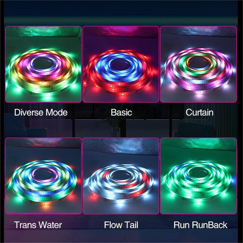 - 【Multi-Colors & DIY】 RGB strip lights with uniquely designed R/G/B mixed dimming, it is not only RGB(Red, Green, Blue), the brightness of the lights strip can be adjusted and offer millions of different colors and 29 lighting modes. Multiple DIY modes can meet your different mood lighting.