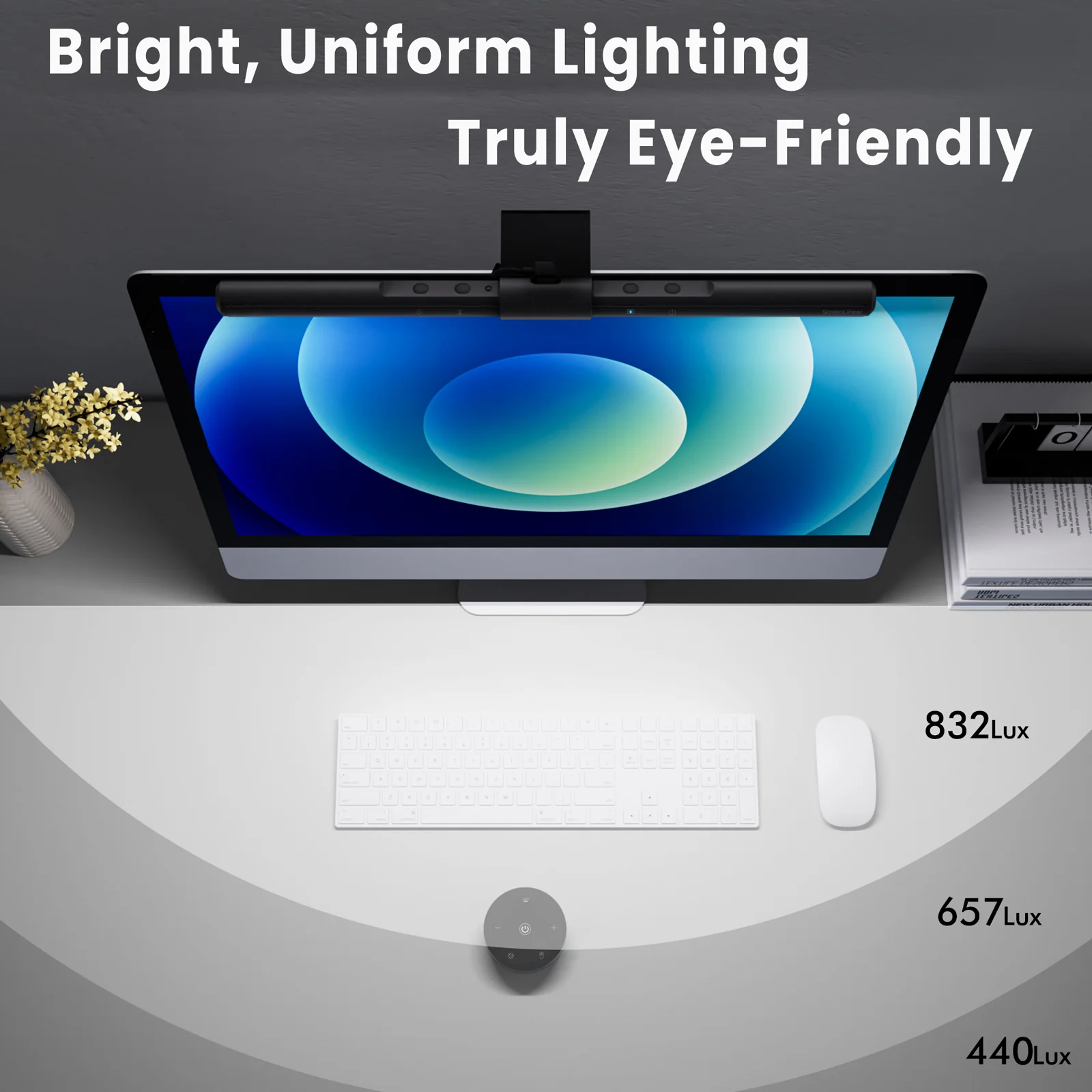 Auto-Dimming & Stepless Dimming: The built-in ambient light sensor continuously monitors the surrounding brightness and intelligently adjusts the existing light to 900 lux, preventing visual fatigue by avoiding excessive or insufficient lighting. The ScreenLinear monitor lamp also allows manual adjustments for both brightness and color temperature (3000K-6500K), so you can customize the lighting to your preference for optimal comfort