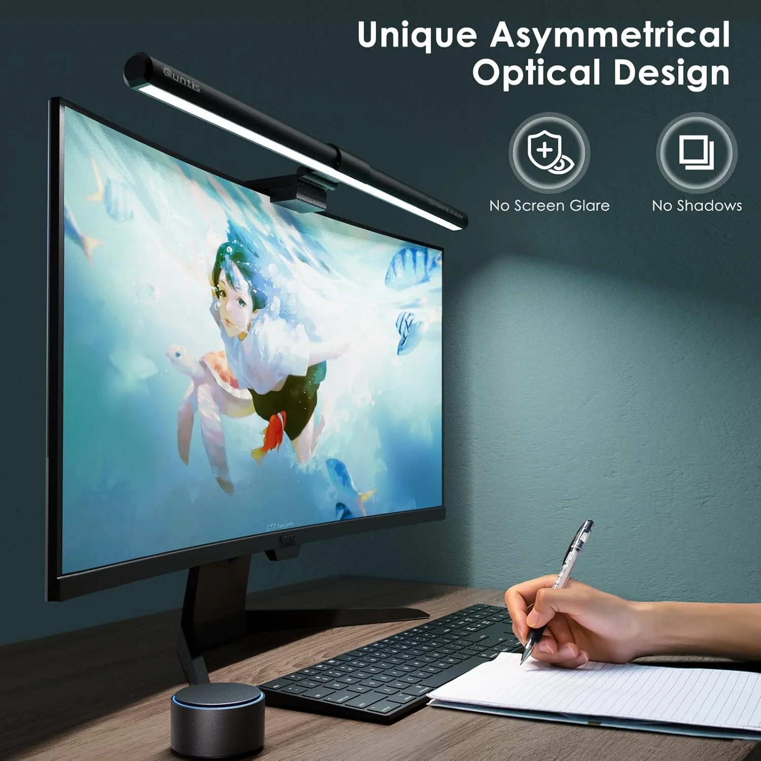 Quntis Monitor Light Bar PRO+ with Remote Control, Fit for Curved/Flat Monitor, Eye-Care USB Computer Lamp Dimmable Screen Light Bar with Auto-Dimming, No Glare Home Office Gaming Desk Lamp