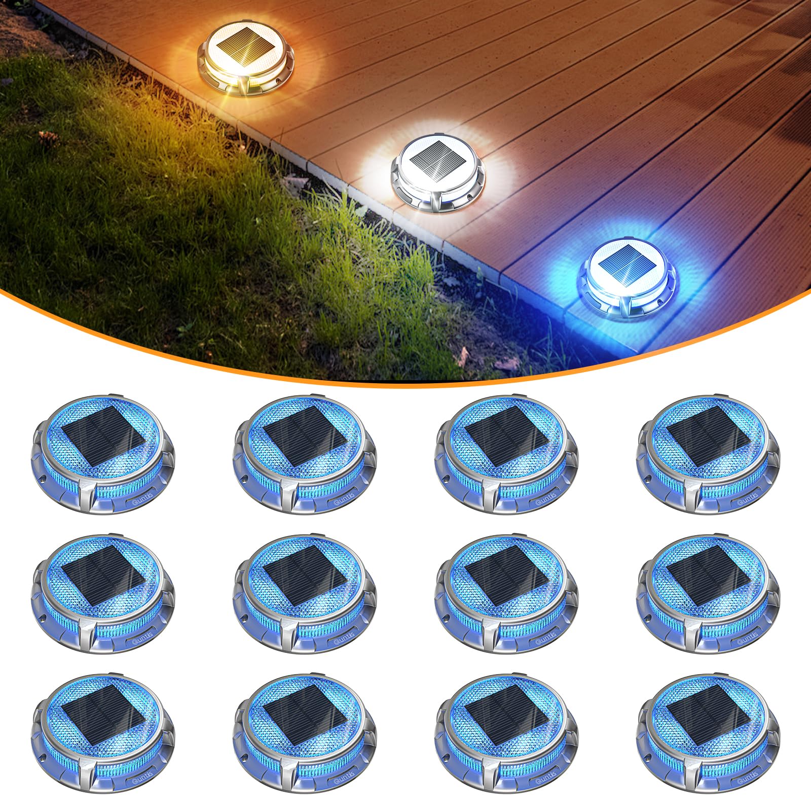 Solar Deck Lights (3-in-1 Color) - IP68 Waterproof Solar Dock Lights for Driveway, Garden Path, Stairs, Walkway