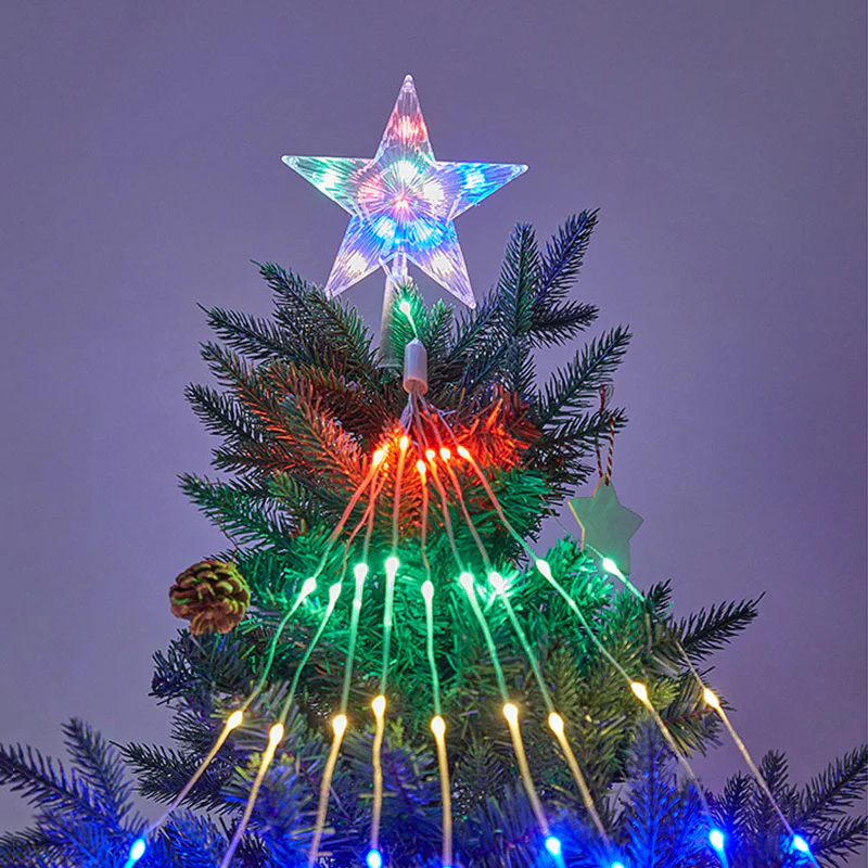 Quntis 2M IP44 Christmas Star Waterfall Lights – Plug-in Outdoor XMAS Tree Lights for Festive Ambiance & Holiday Decor