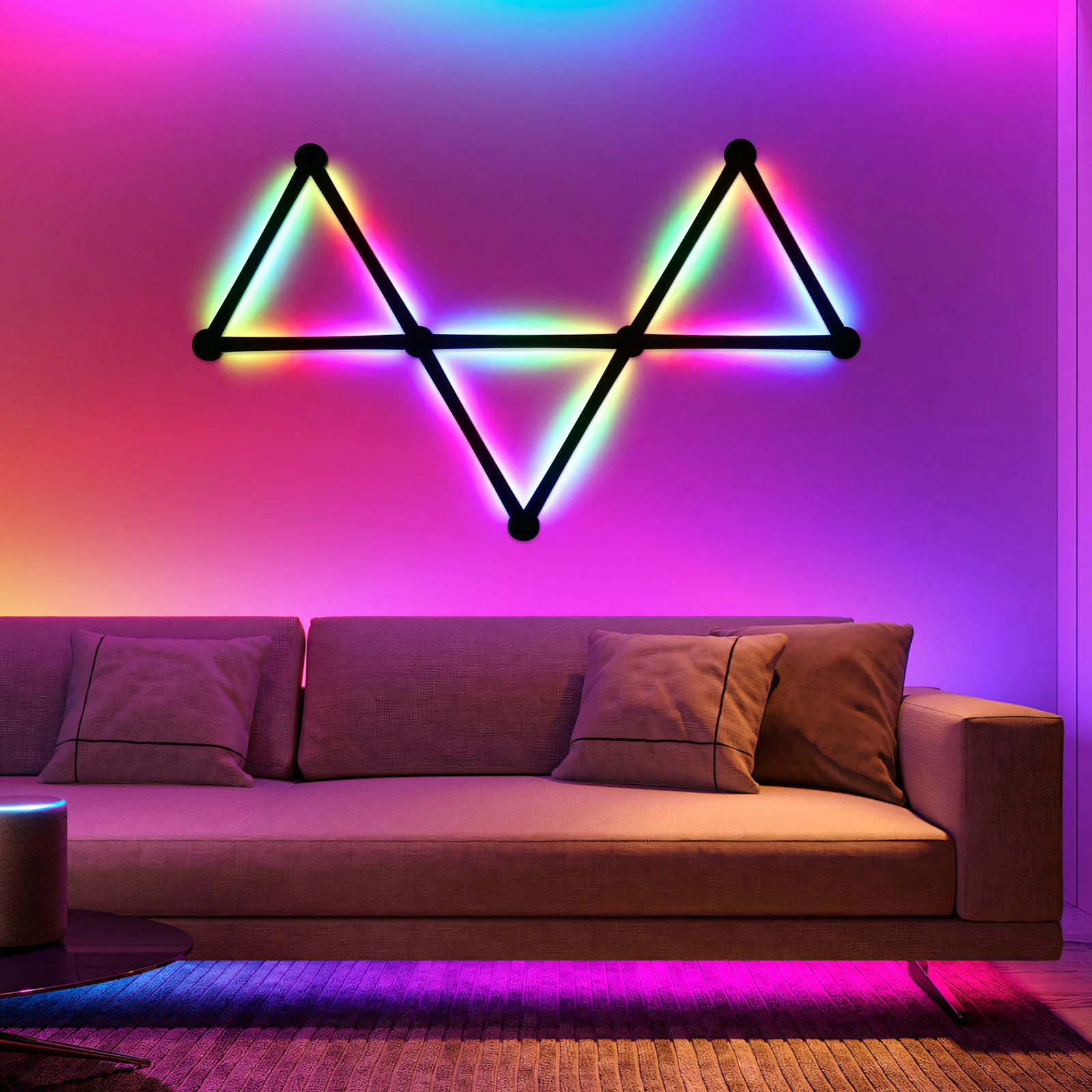 - Easy Installation: Installing the lights is simple and hassle-free. Ensure the wall surface is clean and smooth before designing your desired shape and using the included double-sided tape to mount the RGB wall lights. This no-drill installation process keeps your walls intact while providing secure and reliable adhesion.
