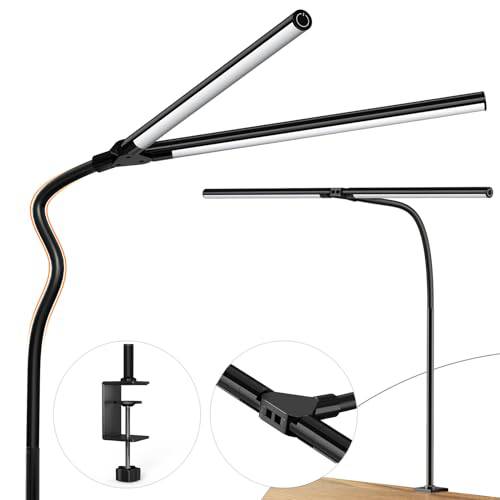 - 【31.5'' Ultra Wide&Dual Head Design】Dual-head lampshade with an expansive emitting surface.Illuminates the entire desk, eliminating shadows and dark corners.Dual heads adjustable for different lighting modes, suitable for multiple users.
